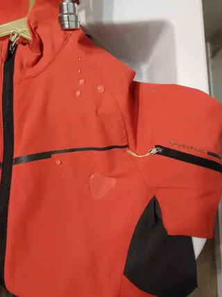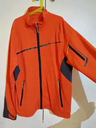Chaqueta técnica cortavientos e impermeable Quechua Color naranja Talla L, que es como una M al ser ajustada Con agujeros en las mangas para dedos pulgares Perfecta para trekking y actividades en montaña