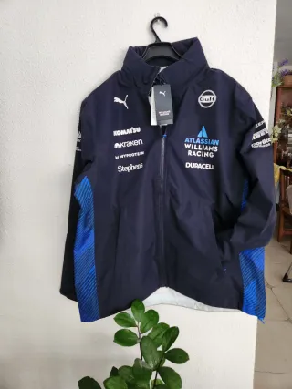 Chaqueta Impermeable oficial de Williams Racing F1. Diseñada para brindar comodidad, protección y estilo. Lleva todos los logotipos de la Escudería. Detalles funcionales y ajuste regulable bajo y puños. Ideal también como regalo para el día del Padre. Nueva!! Talla/ M