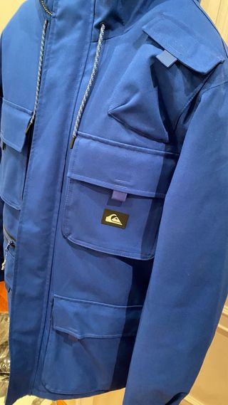 Chaqueta de invierno Quiksilver con tecnología 10K. - Capucha ajustable. - Múltiples bolsillos frontales. - Cierre de cremallera y botones. - Logo de la marca en el bolsillo derecho. - Se puede usar para ESQUIAR.