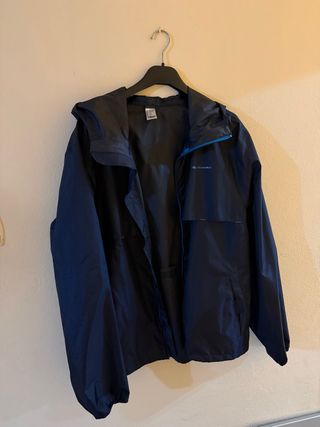 Chaqueta impermeable de la marca Quechua, en color azul. - Diseño con capucha. - Cierre de cremallera frontal. - Bolsillos laterales.