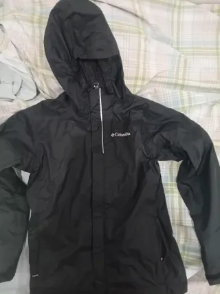 Chaqueta impermeable de la marca Columbia, en color negro y en perfecto estado. - Diseño con capucha. - Cierre de cremallera frontal. -Producto original i calidas excelente