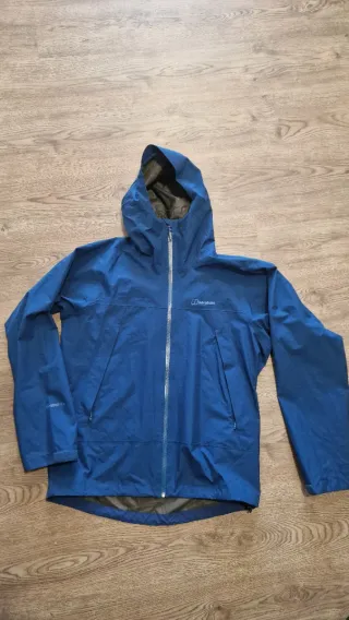 Chaqueta impermeable y transpirable de la marca Berghaus. Talla L /M - Tecnología GORE-TEX Paclite. - Color azul. - Cierre de cremallera frontal.