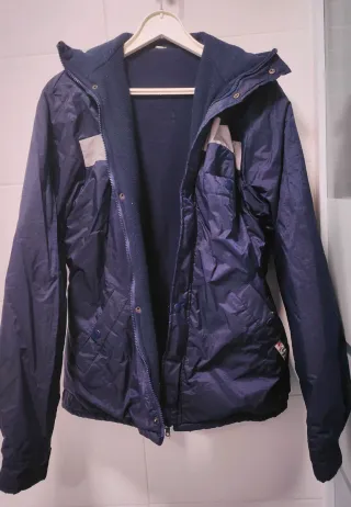 Chaqueta de invierno con forro interior. - Color azul y negro. - Cierre de cremallera y botones.