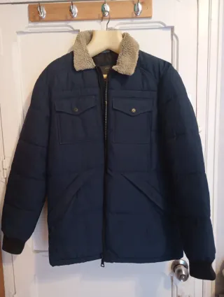 Chaqueta impermeable de la marca Marks & Spencer en color azul. Es una prenda muy cálida, ideal para el frío. - Cuello de borreguito. - Cierre de cremallera. - Dos bolsillos frontales con botón. - Puños elásticos.