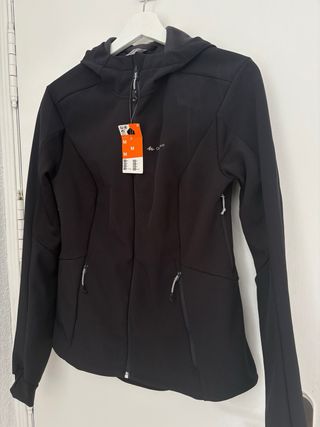 Chaqueta impermeable de la marca Quechua. - Diseño con capucha. - Precio original 99,99€ - Cierre de cremallera frontal. - Dos bolsillos laterales con cremallera. - Puños ajustados.