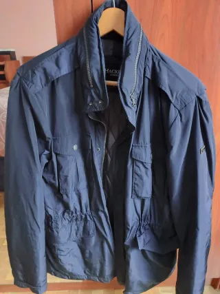 Chaqueta semi impermeable de hombre de la marca Hackett. - Diseño elegante y funcional. - Bolsillos frontales con solapa. - Ajustadores interiores por goma elástica - Cierre de cremallera y botones. - Cuello alto con detalle de cremallera.