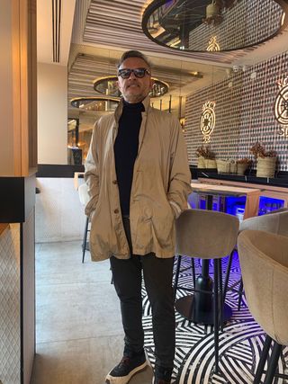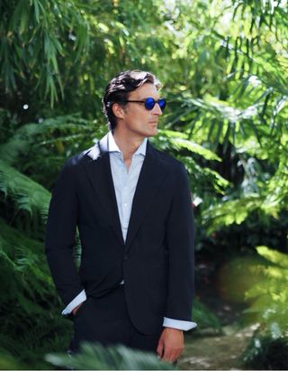Blazer de tejido Italiano Elastico de la Marca de lujo MR.AB Blazer sin forro. Tejido italiano elástico, transpirable e impermeable. Logotipo transferido en el hombro derecho. Solapas anchas de muesca, bolsillo de ribete en el pecho, dos bolsillos de parche delanteros, doble abertura, puños sin botones. Cierre de un botón. Talla L TEJIDO HECHO EN ITALIA. Confeccionado con un tejido técnico avanzado de estructura suave y ligera. Resistente a las arrugas, transpirable y diseñado para mantener su forma durante los viajes y el uso diario. 77 % PA, 23 % EA *Rebajado precio en tienda 680 euros*