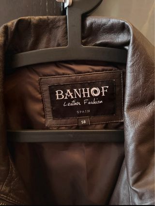 Chaqueta de piel en color marrón, talla XL. - Cierre de botones. - Dos bolsillos delanteros.