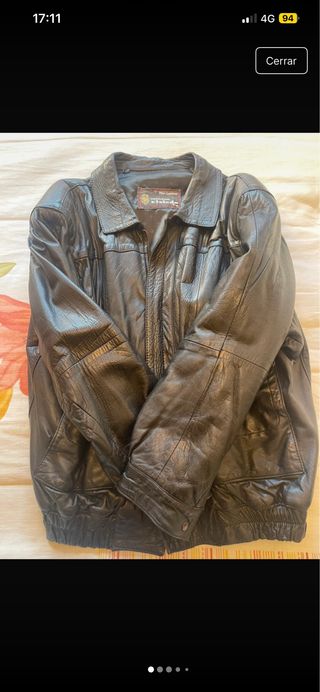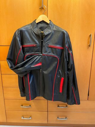 Chaqueton de piel de la marca RED SKIN de cuero 100x100 cuero valorado en 600€ en perfecto estado y forrado internamente para el frío piel gruesa y fuerte para alguien de 1.80 mts - Color negro. - Cierre de cremallera y botones. - Bolsillos frontales.