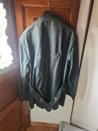 Chaqueta de piel de estilo austriaco en un tono verde oliva. Presenta un diseño clásico con cinturón. - Material: Piel - Color: Verde oliva - Talla: XL / 46 / 56 - Estilo: Austriaco - Detalle: Cinturón con bordados