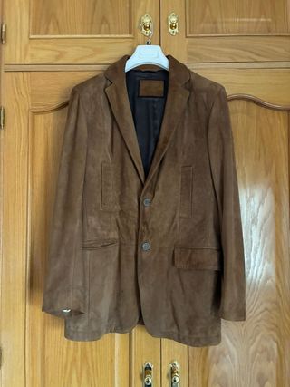 Chaqueta de piel de color marrón. Un clásico atemporal para cualquier guardarropa. - Material: Piel auténtica. - Diseño tipo blazer. - Cierre de botones. - Bolsillo en el pecho. - Tiene algun pequeño roce propio del uso, pero se ha usado muy poco , forro de raso
