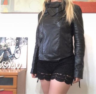 Cazadora biker efecto oversize de cuello solapa con manga larga. - Cierre frontal con cremallera. - Bolsillos laterales con cremallera. - Detalle de trabillas en hombros - Cinturón con hebilla. - Talla M Está en perfecto estado. Sólo llevado a dos eventos. Precio original : 49,95€. ✅Estos días pondré fotos de la cazadora.