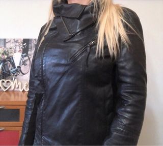 Chaqueta de piel con un diseño moderno y elegante.tallaje pequeño queda como una M - Material: Piel. - Cierre de cremallera frontal. - Bolsillos con cremallera.