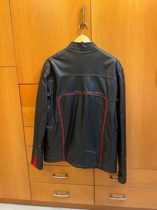 Cazadora de piel con detalles en contraste. - Diseño moderno y llamativo. - Cierre frontal con cremallera. - Bolsillos con cremallera. Comprada en Argentina, sin uso prácticamente desde su compra