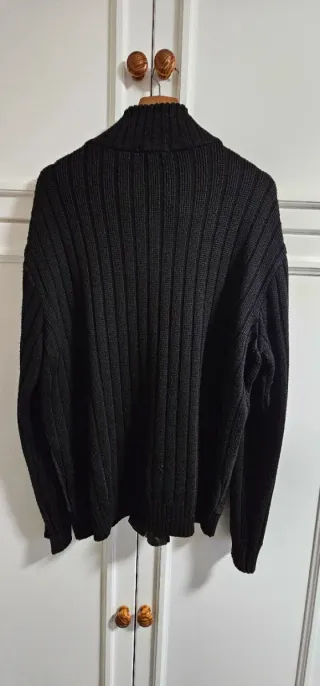 Chaqueta de piel de hombre F&Co Talla: XL Color: Negro Medidas: - Largo 75 cm. - Axilas 50 cm. - Manga: 65 cm. Características: Piel 100% Cierre frontal con botones. Bolsillos laterales y uno interior. La manga derecha y la parte posterior presentan ligeros signos de desgaste.