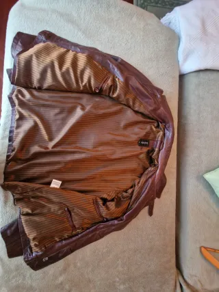 Chaqueta de piel ovina para hombre. Es una piel buena, comprada en peletería Forrada por dentro. 2 grandes bolsillos exteriores y uno interior con cremallera Laterales ajustables - Material: Piel. - Color: Marrón. Si necesitan medidas, me piden. Venta en persona Bilbao y Castro