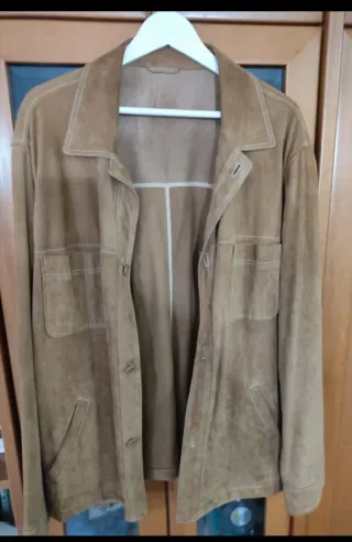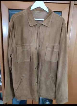 Chaqueta de piel de ante con un diseño clásico y elegante. - Cuello camisero. - Cierre de botones. - Dos bolsillos en el pecho. - Bolsillos laterales. - Costuras visibles.