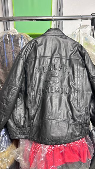 Chaqueta de cuero con el logo de Harley Davidson en la espalda. Un clásico para los amantes de la marca. - Diseño con relieve. - Puños y cintura elásticos.