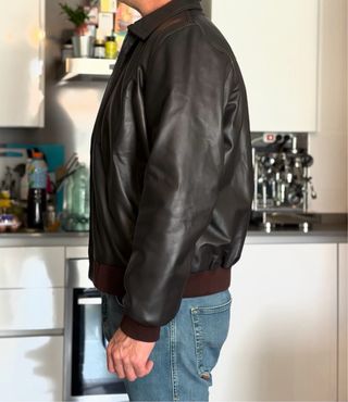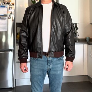 Chaqueta vintage bomber de piel, en buen estado aunque tiene un corte en un brazo, talla 54 - Diseño clásico.