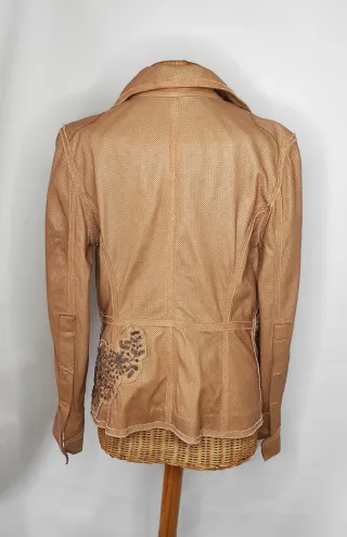 Chaqueta de piel beige perforada