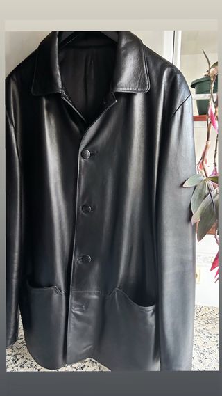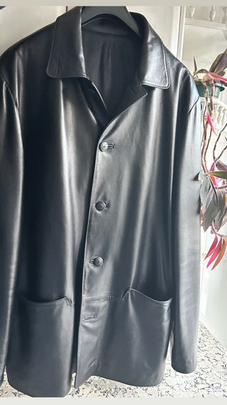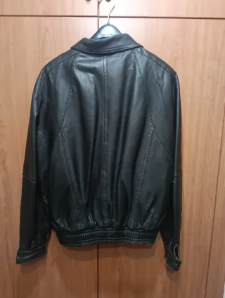 Más prendas de cuero en mi perfil. Poco usada, en muy buen estado, sin desgaste, solamente ligeros indicios de uso previo. Forro en perfecto estado. Cuero ovino de excelente calidad flexible y suave. Grosor medio-fino. Color negro intenso. Talla M. El modelo mide 1,74 y pesa 82 kgs. Medidas indicadas en las fotos. Preguntar cualquier información sin compromiso.