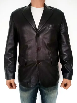 Elegante chaqueta de piel para hombre. - Material: Piel genuina. - Color: Negro. - Diseño clásico de blazer.