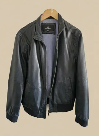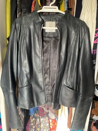 Chaqueta Cuero Azul Massimo Dutti Talla S