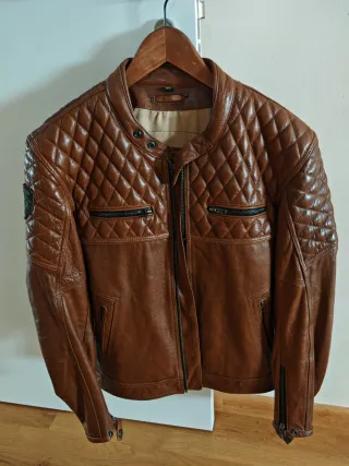 Chaqueta de piel con un diseño acolchado en rombos. Especial para moto, tiene protecciones en hombros y codos, aunque es muy bonita para usarla de calle tambien. - Cremallera frontal. - Bolsillos con cremallera en el pecho y laterales. Tiene varios bolsillos interiores. - Puños con cremallera y botón. Talla 50 (horma ajustada)