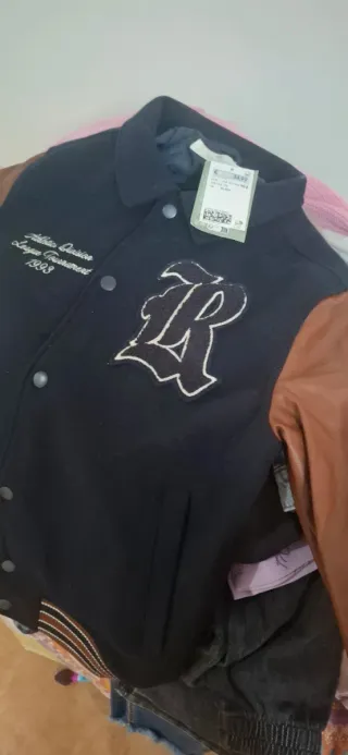 Chaqueta estilo béisbol para niño, con mangas de piel. - Diseño con parche de letra 'R'. - Cierre de botones a presión. - Bolsillos laterales. - Detalle de bordado Athletic Division League Tournament 1993.