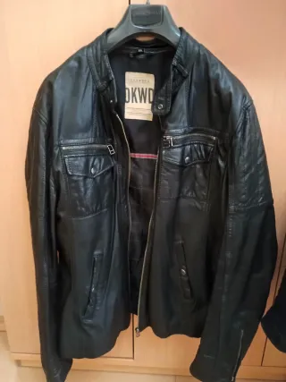 Chaqueta de piel para hombre. Talla XXL pero mejor para quien use talla xl. Mide 63 cm de axila a axila. En muy buen estado. - Diseño moderno y elegante. - Cierre de cremallera frontal. - Bolsillos con cremallera en el pecho. - Bolsillos inferiores con solapa y botón.