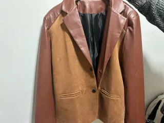 Americana de dos tonos, con mangas y solapas en efecto piel y cuerpo en ante. - Cierre de un botón. - Bolsillos delanteros. - Forro interior.