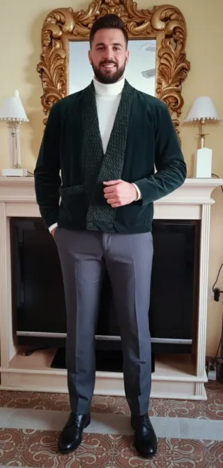 Una oportunidad única de adquirir una pieza de alta sastrería firmada por PACO ROCA. Esta chaqueta masculina es una prenda muy especial, totalmente nueva a estrenar y conserva su etiqueta original. Destaca por la excelente calidad su tejido de antelina aterciopelado en color verde profundo y el impecable trabajo artesanal de punto trenzado en el cuello y los bolsillos. Es una prenda de autor con una caída perfecta, ideal para el hombre que busca exclusividad y elegancia en una pieza nueva. Cómo combinar esta pieza: Estilo moderno: Con unos pantalones chinos en tonos tierra o negros y botines de piel para un look sofisticado.....