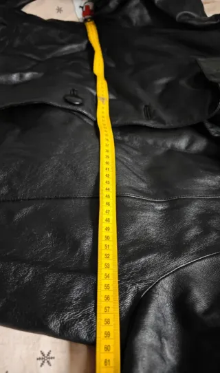 Más prendas de cuero en mi perfil. Bastante usada, pero en bastante buen estado. Los hombros estaban un poco desgastados, pero se han reparado con cera para cuero. Algunos pequeños agujeros ya zurcidos en la parte izquierda del forro, poco visibles. Cuero ovino de excelente calidad,flexible y suave. Grosor medio-fino. Textura de grano fino. Color negro intenso y brillante. Tira de piel en la cintura. Talla L de mangas relativamente cortas. Muy adecuada para usuarios de altura y constitución media. El modelo mide 1,74 y pesa 82 kgs. Medidas indicadas en las fotos. Preguntar cualquier información sin compromiso. #cuir #cuero #leather