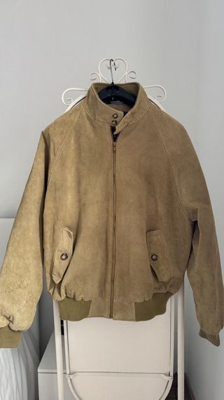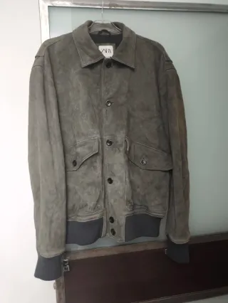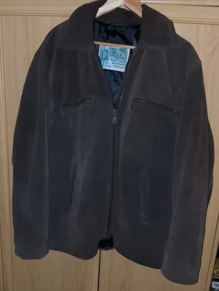 Chaqueta de piel de ante en color marrón en perfecto estado. Talla L hombre - Cierre de cremallera. - Cuello redondo. - Bolsillos frontales con cremallera. - Bolsillos interiores.