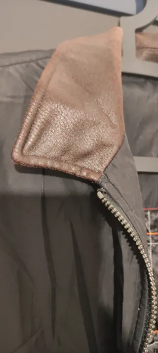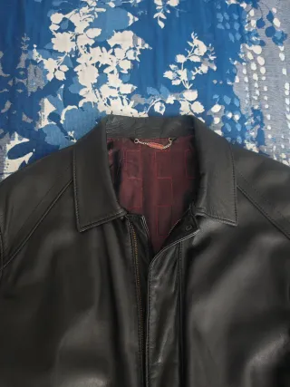 Chaqueta estilo bomber de piel de la marca Redwood - Chaqueta de piel gruesa y suave, la chaqueta es pesada y de calidad - Cuello de borrego natural 100% - Cremallera YKK funcionando perfectamente. 2 bolsillos interiores, uno vertical con cremallera y uno horizontal. - Múltiples parches decorativos intercambiables. Recomiendo para alguien que quiera una XL que talle correctamente o una L que talle oversize