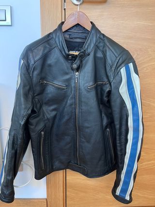 Vendo chaqueta Harley-Davidson de piel auténtica modelo Legend Leather Jacket (98125-17EM). Cuero 100% buffalo hide (piel de búfalo), resistente y de muy buena calidad. Color negro con parches bordados Harley-Davidson: uno en el pecho y gran parche en la espalda. Interior perforado y forro 100% poliéster. Estado: muy bueno, con marcas normales de uso en el cuero (se ve en fotos), sin roturas ni descosidos. Se entrega limpia y lista para usar.