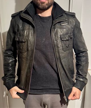 Chaqueta de piel para hombre de la marca Vermont. Un clásico atemporal para tu armario. Lleva una representación ver antepenúltima foto. - Material exterior de piel. - Cierre de cremallera frontal. - Bolsillos con cremallera.