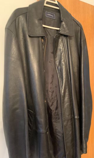 Se vende chaqueta de piel para caballero. Piel auténtica. Necesita una limpieza. TALLA XXL. MEDIDAS: Ancho de hombros: 50cm; ancho bajo axilas: 63cm; largo total: 80cm; largo desde axilas: 48cm; largo manga: 65cm; ancho manga: 24 cm.