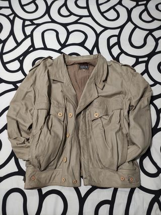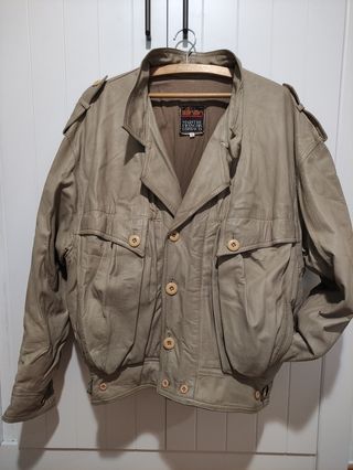 Cazadora color caqui, muy ajustada de piel, talla S, estilo Baker