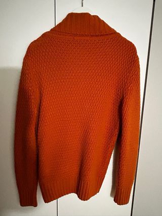 Chaqueta de punto con un diseño italiano único. - Cierre con botones de madera y detalles en piel. - Cuello tipo chal. - Textura de punto con relieve.