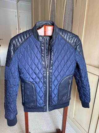 Chaqueta de piel para caballero de la marca Hugo Boss. - Diseño acolchado. - Cierre de cremallera y botones. - en mano 50€