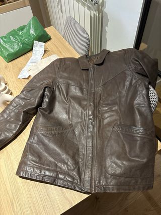 Cazadora piel marrón hombre L