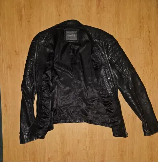 Chaqueta de piel Jack & Jones en talla M. Un básico para tu armario. - Diseño acolchado en hombros. - Cierre de cremallera frontal. - Bolsillos con cremallera en pecho y laterales. - Puños con cremallera - Se escuchan ofertas razonables