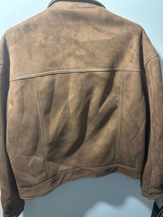 Cazadora de Zara de piel falsa efecto ante. - Cierre de botones a presión. - Bolsillos laterales con cremallera. - Cuello y puños elásticos. - Talla M - No se ha usado nunca. Fue un regalo y me venía grande.