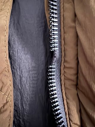 Chaqueta acolchada de Zara en color marrón. Diseño moderno y cálido. - Cuello alto. - Cierre de cremallera. - Bolsillos laterales.