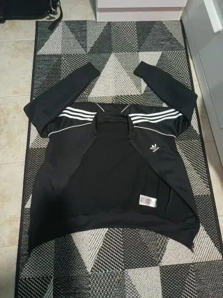 Chaqueta deportiva Adidas Adicolor Classics en color negro. Presenta el icónico diseño de tres rayas en las mangas. - Talla XS - Diseño clásico de Adidas. - Tres rayas blancas en las mangas. - Logo de Adidas en el pecho. Cualquier duda preguntame👍