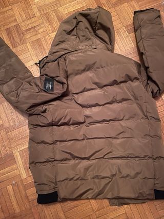 Chaqueta acolchada con capucha en color mostaza. - Cierre de cremallera. - Bolsillos frontales con solapa. - Detalle de ribete negro en bolsillos. - Capucha ajustable con cordones. Nueva a estrenar, con etiquetas. Relleno thermolite , muy calentita. Talla M de hombre, PVP 229€