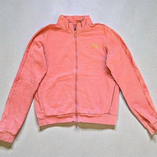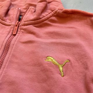 Chaqueta deportiva Puma en color rosa. Presenta un diseño clásico con cremallera frontal y cuello alto. - Logo de Puma bordado en amarillo en el pecho. - Rayas deportivas en las mangas. - Bolsillos laterales.