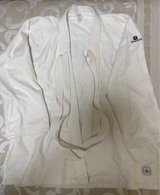 Vendo judogi completo de la marca Domyos, en color blanco. Está como nuevo, usado 2 veces para clase de universidad. - Incluye chaqueta ,pantalón y cinturon - Tejido ligero y cómodo.