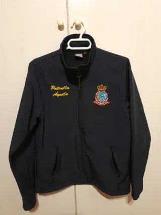 Chaqueta impermeable con bordado de la Patrulla Águila y escudo. Para niñ@s de entre 9 y 12 años. Unisex. Muy bonita y nueva - Cierre de cremallera. - Dos bolsillos laterales con cremallera. - Cuello alto. Cortavientos y neopleno con forro interior. Comprada en San Javier (Santiago de la ribera). No traspasa el frío. No envío. Más cosas en mi perfil. Calidad a buen precio.